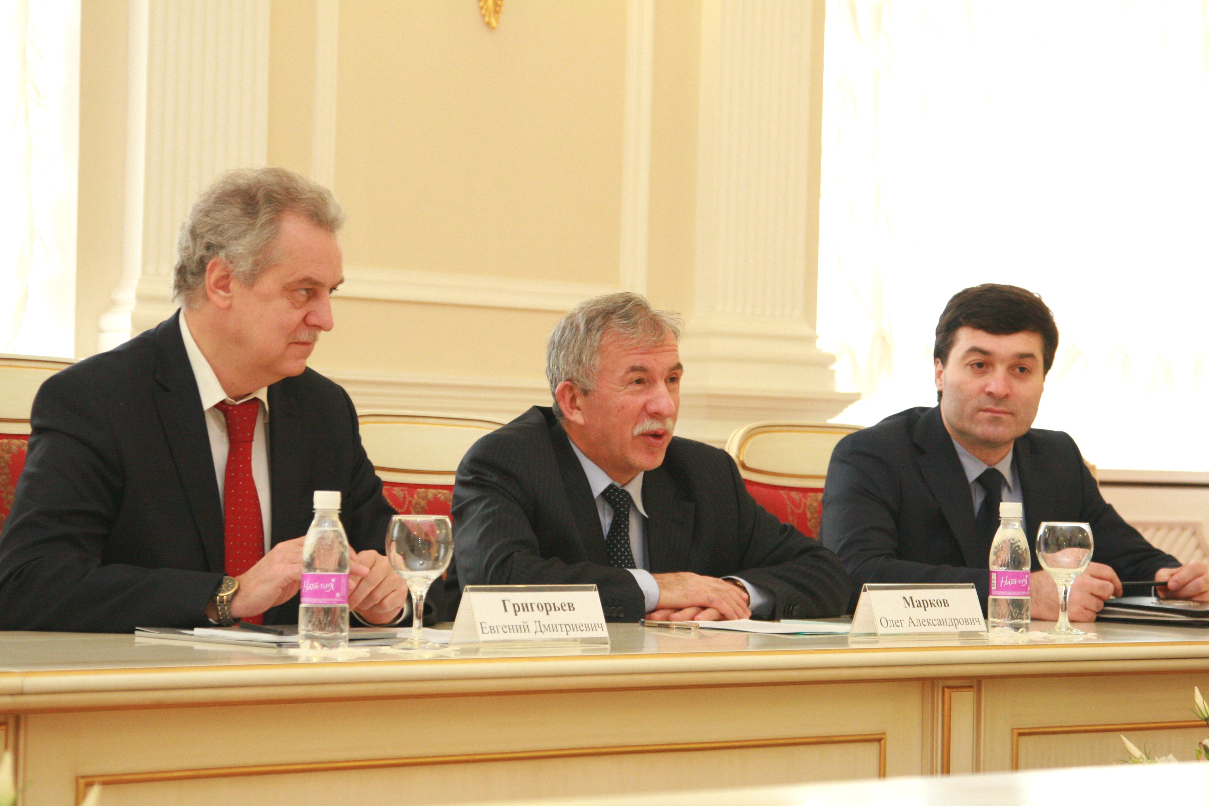 О.А.Марков поблагодарил А.А.Сафарова за оказанную поддержку в проведении культурно-деловой миссии Санкт‑Петербурга в Республике Татарстан, которая состоялась в декабре 2014 года в Казани.