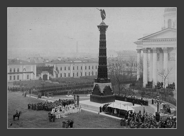 По завершении к колонне Славы были возложены цветы от Санкт‑Петербургской епархии, Всемирного клуба петербуржцев, Генеральных консульств Болгарии и Румынии, Александровского исторического общества.