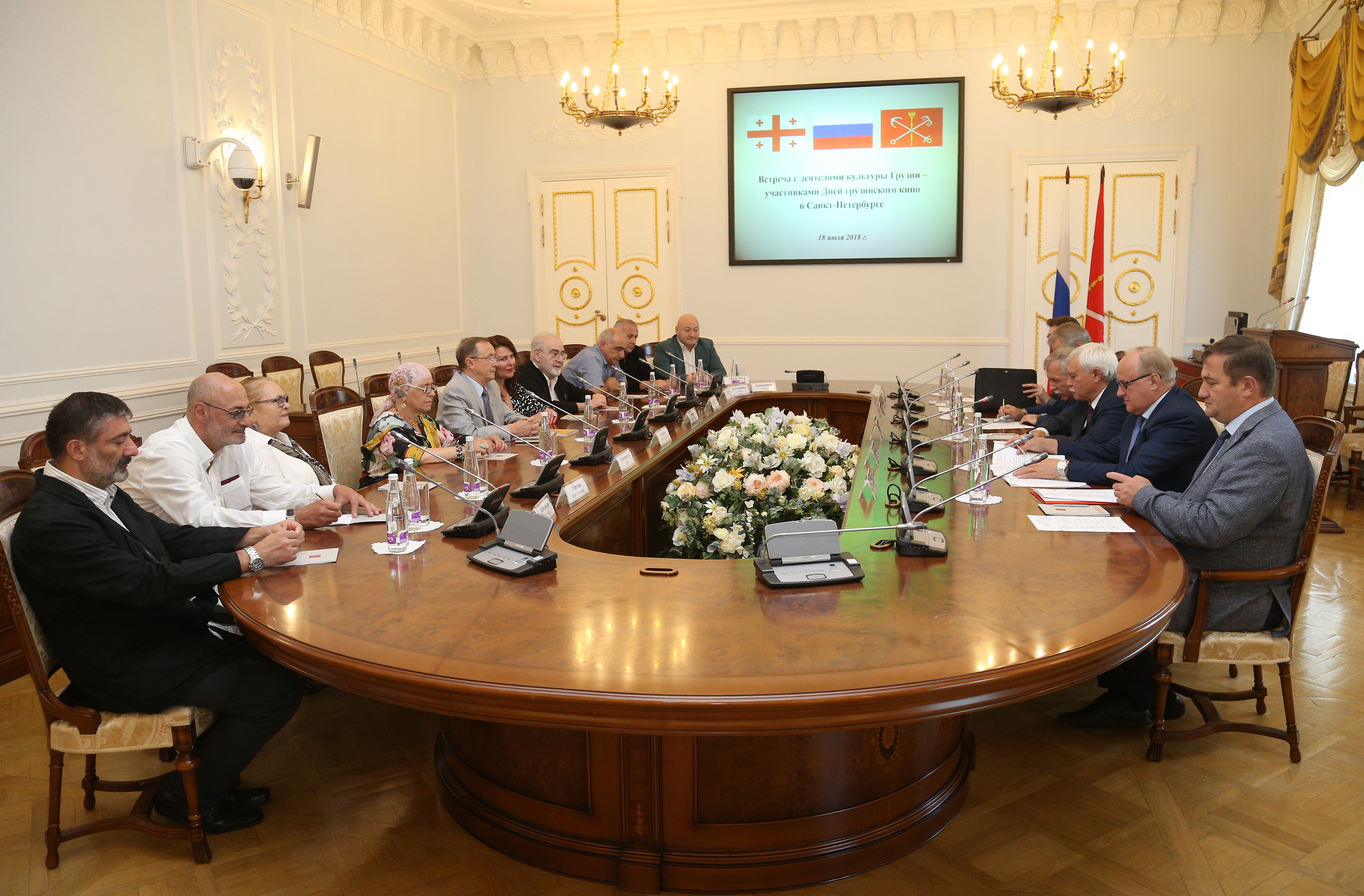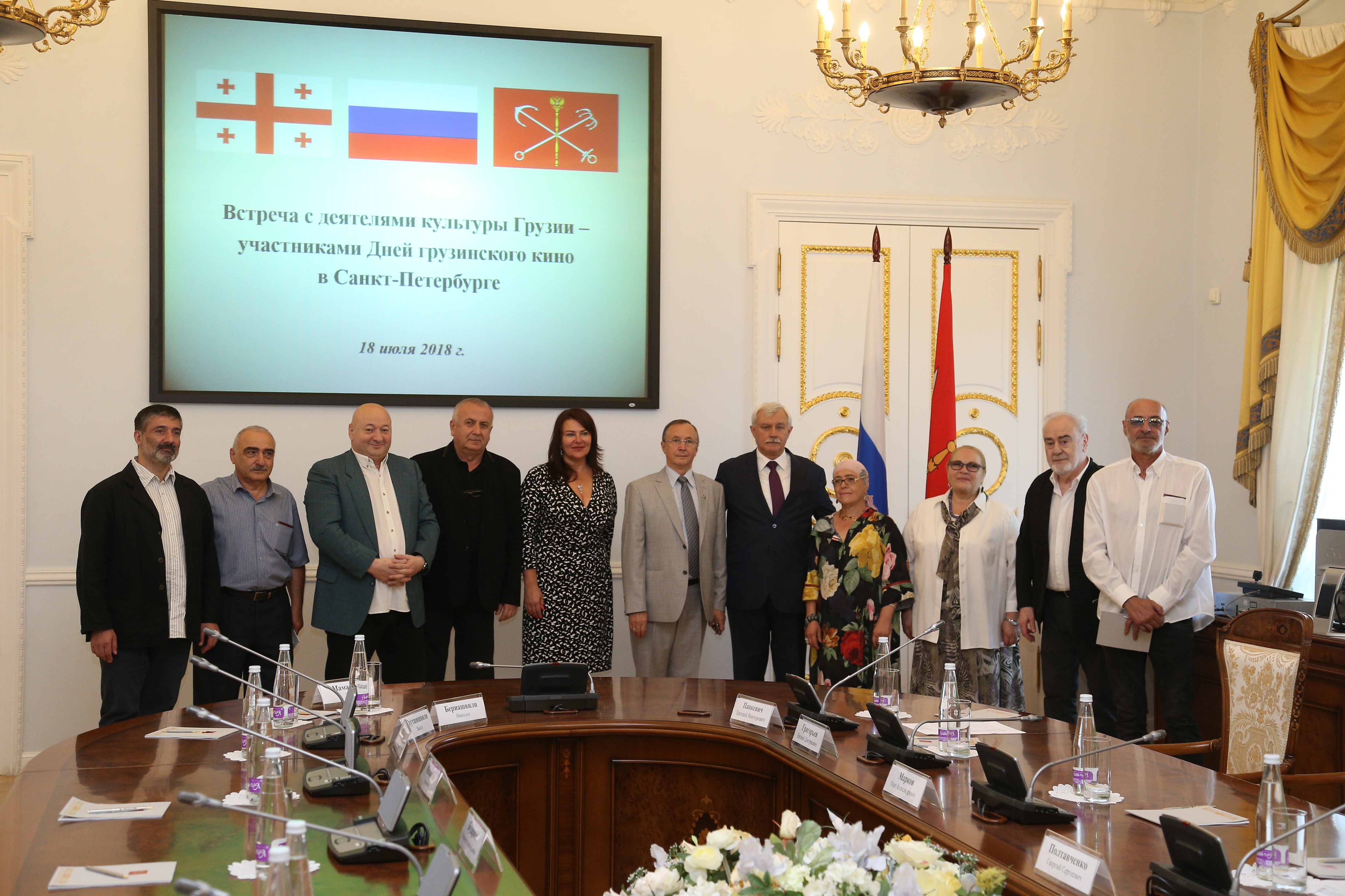 18 июля 2018 года в Смольном состоялась встреча Губернатора Георгия Полтавченко с деятелями культуры Грузии – участниками Дней грузинского кино в Санкт‑Петербурге. Во встречи приняли участие вице-губернаторы Санкт‑Петербурга О.А.Марков и В.В.Кириллов, председатель Комитета по внешним связям Санкт‑Петербурга Е.Д.Григорьев, народный артист России Н.П.Бурляев, известные грузинские артисты, актеры и режиссеры.