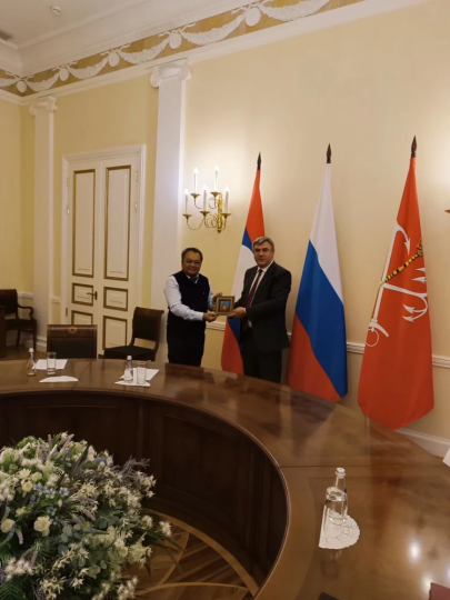 Открывая встречу, заместитель председателя Комитета по внешним связям Санкт‑Петербурга Вячеслав Калганов, отметил: «В современном быстро меняющемся мире стабильное и надежное партнерство – это большая ценность. Именно поэтому мы так дорожим нашими отношениями. Давно работаем, знаем друг друга. Комитет активно поддерживает проекты вашей компании, направленной на развитие гуманитарного и торгово-экономического сотрудничества. Я уверен, что вместе мы сможем достичь еще больших высот и реализовывать самые амбициозные проекты». Он поблагодарил президента компании за помощь и поддержку прошедших в Санкт‑Петербурге в марте этого года Дней Вьентьяна, кульминацией которых стало подписание Соглашения о сотрудничестве между Правительством Санкт‑Петербурга (Российская Федерация) и Администрацией Вьентьяна (Лаосская Народно-Демократическая Республика) в торгово-экономической, научно-технической и социально-гуманитарной сферах.