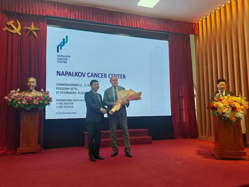 Заместитель председателя Комитета Вячеслав Калганов обратился к участникам мероприятия. «Сегодняшняя встреча является очередным подтверждением укрепляющегося всеобъемлющего стратегического партнерства между Вьетнамом и Российской Федерацией в области здравоохранения и науки. Выражаю большую благодарность Ассоциации бизнесменов Ханоя и ее председателю Нгуен Хонг Шону за содействие в установлении контактов между Онкоцентром им. Н.П. Напалкова и больницей «Дружба» летом 2025 года. Результатом наших совместных усилий стало подписание меморандума о намерениях по развитию сотрудничества в области лечения онкологических заболеваний между двумя крупными медицинскими центрами наших стран, проведение настоящей конференции с участием врачей из Ханоя и Онкоцентра Хошимина, которые присутствуют здесь по приглашению петербургских коллег, а также организация консультаций профессора Владимира Моисеенко по вопросу лечения пациентов во Вьетнаме», - заявил Вячеслав Калганов.