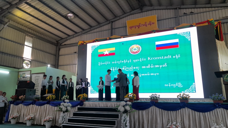 По окончании церемонии мьянманские школьники смогли попробовать сладости, привезенные для них из Северной столицы.