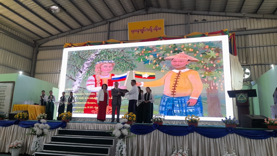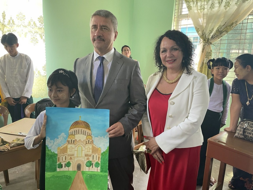 Учащиеся средней школы Тханлина приняли активное участие в проведении открытия выставки. Они подготовили 60 рисунков, которые дополнили работы российских ребят, и выступили с концертной программой, в которую вошли национальные песни и танцы, отличающиеся сложной хореографией.