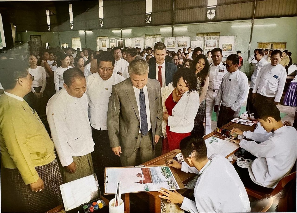В первой половине дня состоялось торжественное открытие выставки рисунков воспитанников Детской художественной школы им. М.К. Аникушина г. Кронштадта в средней школе №1 Тханлина. Учащиеся подготовили 45 работ, которые были доставлены членами делегации в Мьянму. Юные кронштадтские художники изобразили на своих полотнах сюжеты из истории и культуры родного города и далекой Мьянмы, сцены из жизни горожан, городские праздники. Выставка получила название «Краски нашей Земли. Кронштадт и Мьянма глазами российских детей» и вызвала живой интерес среди мьянманских школьников.