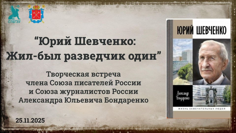 25 ноября 2025 года в Санкт‑Петербургском государственном экономическом университете прошла творческая встреча с членом Союза писателей России и Союза журналистов России Александром Бондаренко.