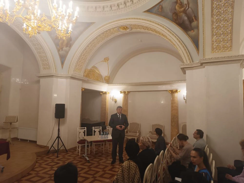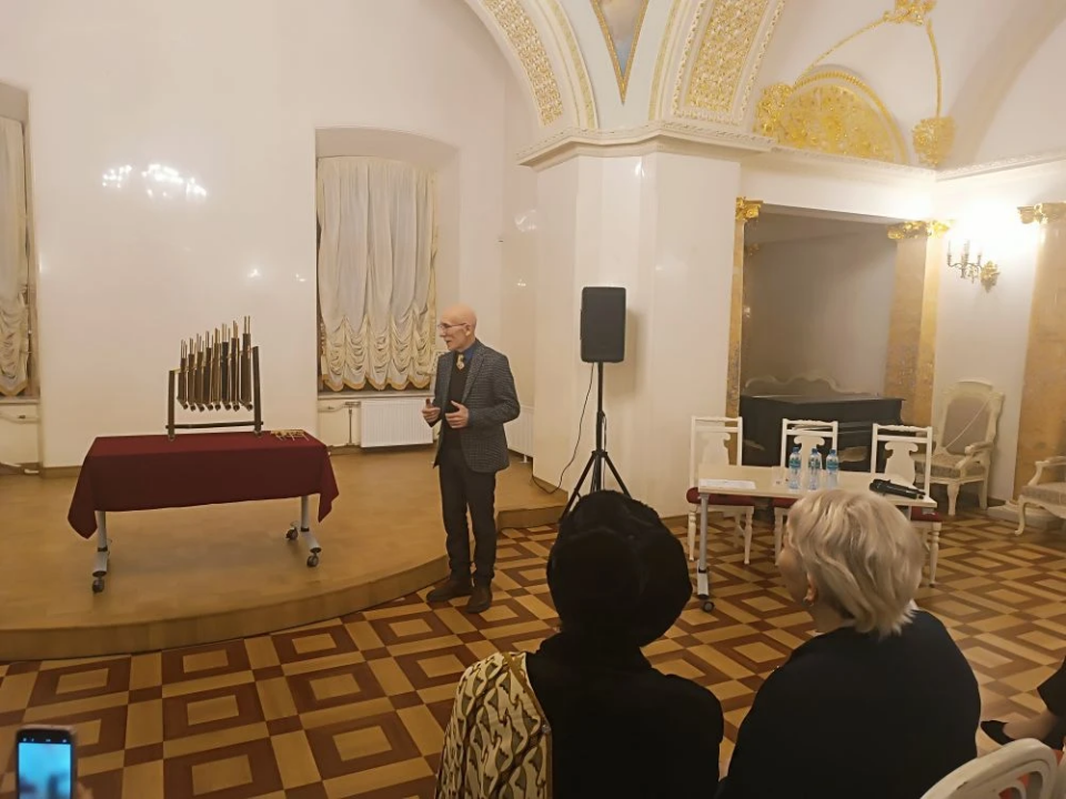 Старший научный сотрудник Музея театрального и музыкального искусства – филиала Шереметевский дворец – Музей музыки, хранитель коллекции музыкальных инструментов Владимир Кошелев продемонстрировал свою технику игры на заморском инструменте.