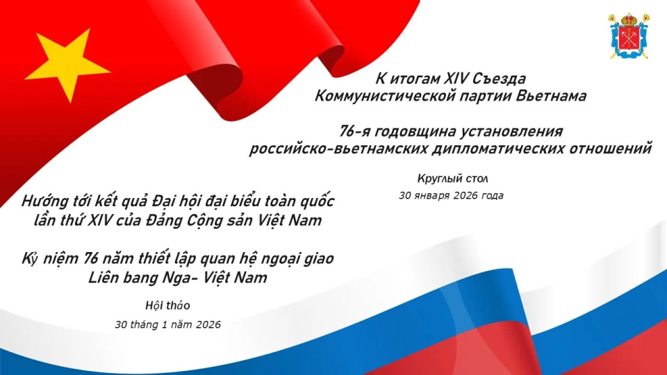 30 января в Санкт‑Петербургском Доме национальностей состоялся круглый стол, посвященный обсуждению ключевых итогов XIV Съезда Коммунистической партии Вьетнама (КПВ), а также 76-й годовщине установления российско-вьетнамских дипломатических отношений.