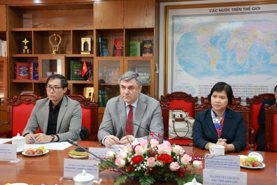 Вячеслав Калганов высоко оценил роль издательства «Образование» во вьетнамской печатной индустрии и выразил уверенность, что сотрудничество в области издательского дела, полиграфии и продвижения культуры имеет большой потенциал для развития.