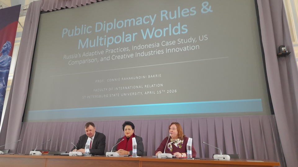 15 апреля 2026 года на Факультете международных отношений (ФМО) СПбГУ при содействии Комитета по внешним связям Санкт‑Петербурга состоялась открытая лекция профессора ФМО и Амбассадора СПбГУ Конни Бакри на тему «Правила публичной дипломатии и многополярные миры».