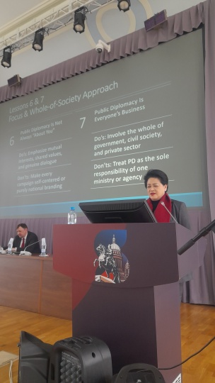 В частности, она раскрыла понятие «7 уроков дипломатии», коснулась истории выстраивания отношений СССР с Индонезией, выделила особую роль социальных сетей в век развития цифровых технологий.