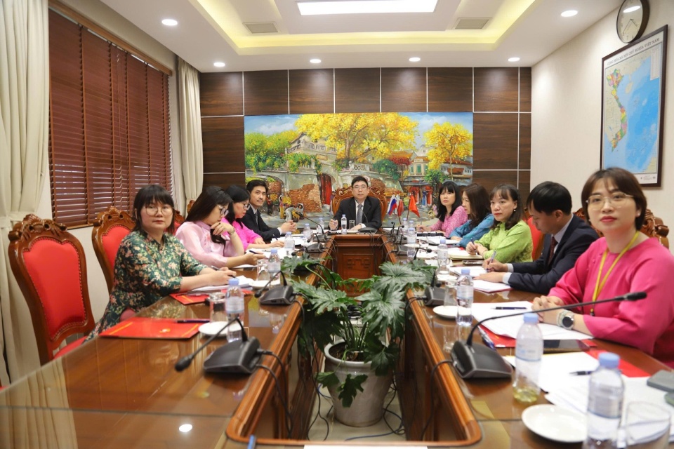Вячеслав Калганов рассказал о проведении Комитетом цикла мероприятий, посвященным итогам Съезда, а также предложил Архивному департаменту Канцелярии ЦК КПВ провести совместно с Государственной политической академией им. Хо Ши Мина выставку, посвященную истории Партии, а также задачам развития страны, поставленным XIV Съездом КПВ.